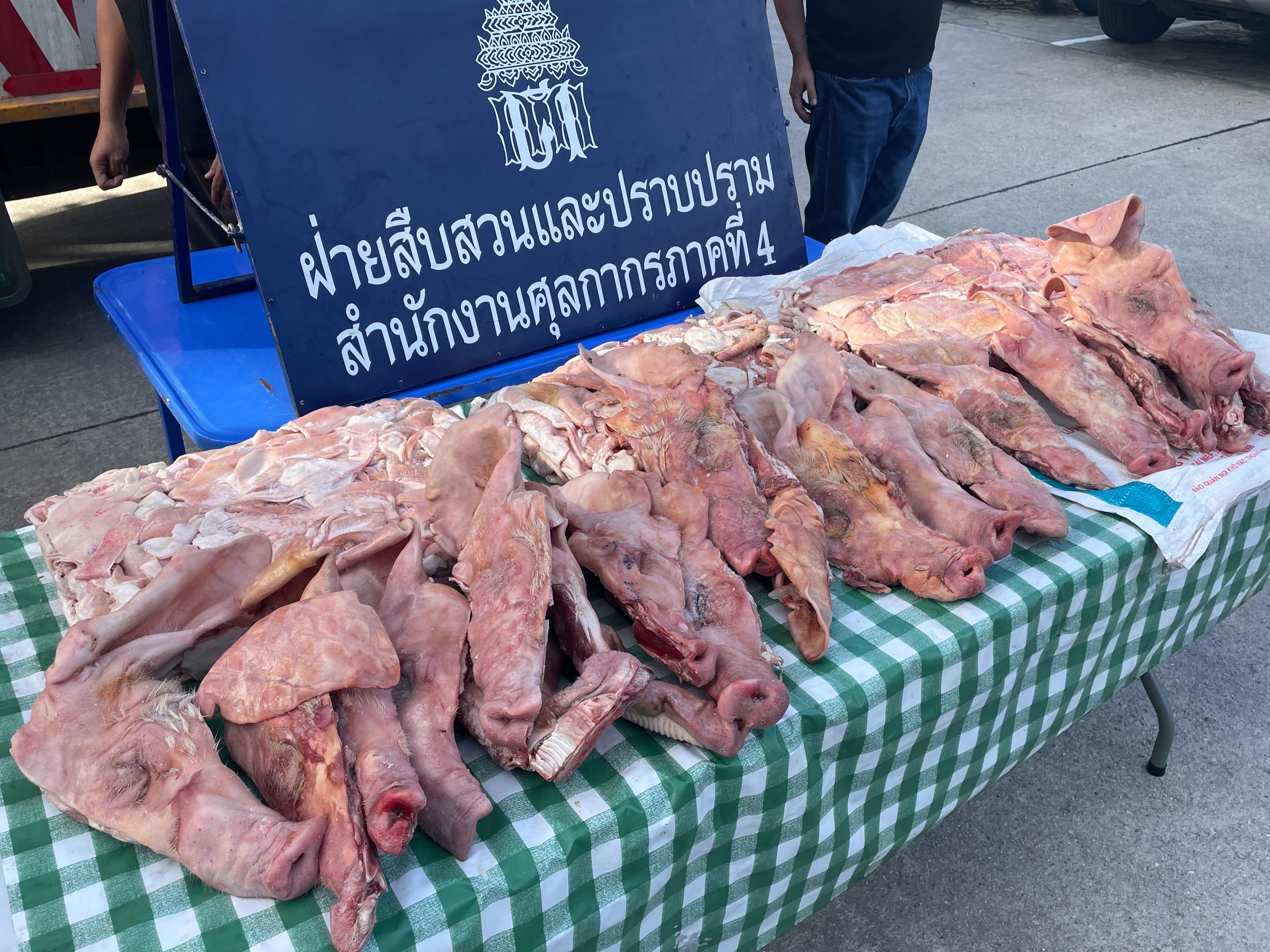 ทั้งนี้ เมื่อวันที่ 29 พฤศจิกายน 2565 เวลาประมาณ 15.00 น. เจ้าหน้าที่ฝ่ายสืบสวนและปราบปราม สำนักงานศุลกากรภาคที่ 4 จังหวัดสงขลา ได้ทำการตรวจค้นรถยนต์บรรทุก 12 ล้อ บริเวณริมทางหลวงชนบท 2004 ตำบลเขารูปช้าง อำเภอเมืองสงขลา จังหวัดสงขลา ผลการตรวจค้นพบ ชิ้นส่วนสุกรแช่แข็ง มีถิ่นกำเนิดต่างประเทศ บรรจุอยู่ภายในถุงพลาสติกมีข้อความภาษาต่างประเทศ โดยไม่พบเอกสารใบอนุญาตนำเข้าหรือเอกสารอื่นๆ ที่เกี่ยวข้องในการปฏิบัติพิธีการทางศุลกากร จำนวน 12,000 กิโลกรัม รวมมูลค่า 3,000,000.00 บาท